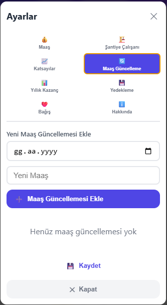 Aylık ve yıllık kazanç raporlarınızı görüntüleyin. Maaş güncellemelerinizin geçmişini takip edin.
